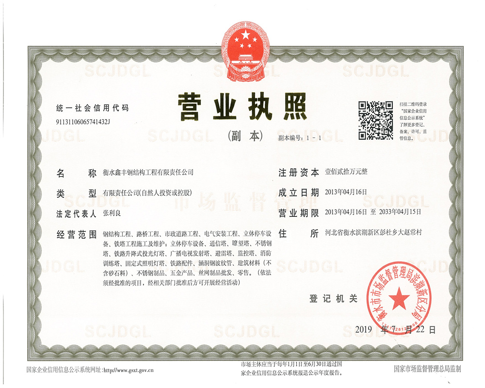衡水鑫豐鋼結(jié)構(gòu)工程有限責(zé)任公司建于 2003年, 技術(shù)力量雄厚 , 專(zhuān)注生產(chǎn)鋼結(jié)構(gòu)鐵塔系列產(chǎn)品 。本廠具有鋼、鋁塔設(shè)計(jì),制作以及鑄造、鉚焊、鍛壓、熱鍍鋅、防腐等綜合制作能力,在設(shè)計(jì)、制作、安裝以及專(zhuān)用設(shè)備方面有豐富的經(jīng)驗(yàn)。